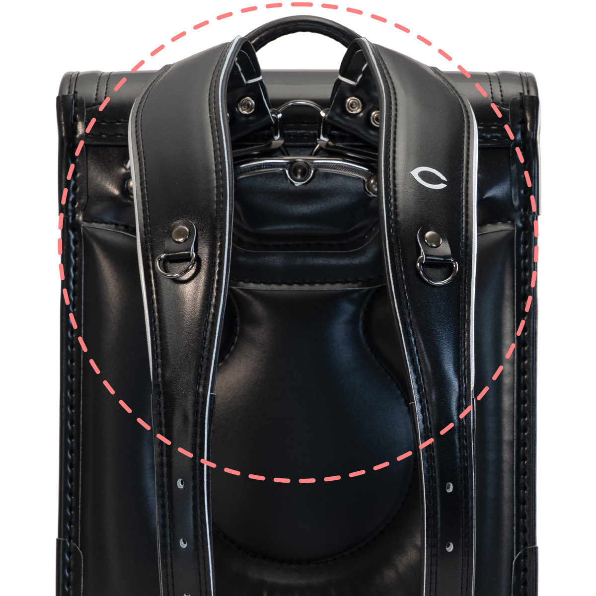 ランドセルと背中の隙間がなくなり、背中全体でランドセルの荷重を受けることで肩への負担を軽減。実際の重量よりも重さを感じにくく、また姿勢が悪くなるのを防止します。
