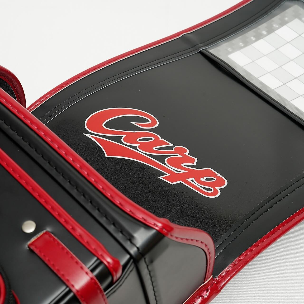 雨やキズに強いクラリーノ・タフロックの素材を採用し、表面には特別仕様の白×赤のビッグロゴが刺繍されたカープファンにはたまらないデザイン!
